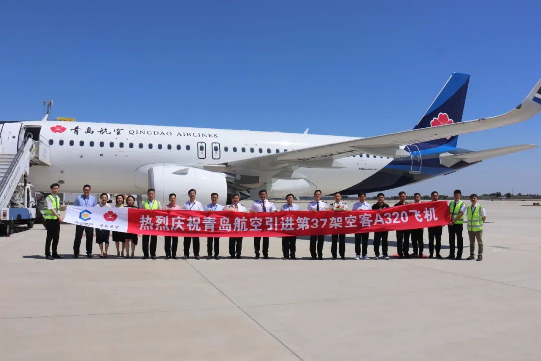 6月27日9时53分,一架身披全新耐冬花涂装的空客A320neo飞机从法国图卢兹顺利抵达青岛胶东国际机场,这是青岛城投集团旗下青岛航空今年到场投入运营的首架新飞机,注册号为B-32AM,标志着青岛航空全空客机队规模扩增至37架,运力规模进一步扩大