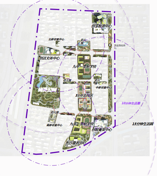 五十八中北校区落户创智菁英城,标志着青钢片区城市更新和城市建设迈上新台阶。规划4所幼儿园、2所54班九年一贯制学校,由五十八中托管。优质教育资源的有效扩增,是显著提升该片区教育教学水平,实现15年上学不出菁英城的有力保证。另有创智菁英公园,拟打造为市级生态公园、建设面积13.39公顷。以生态绿色为理念,叠加周边商业,打造充满活力、特色消费的城市中央公园。