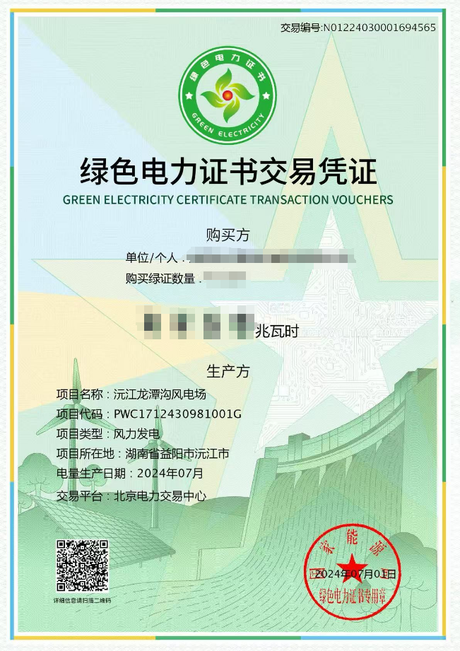 (图为绿色电力证书交易凭证)