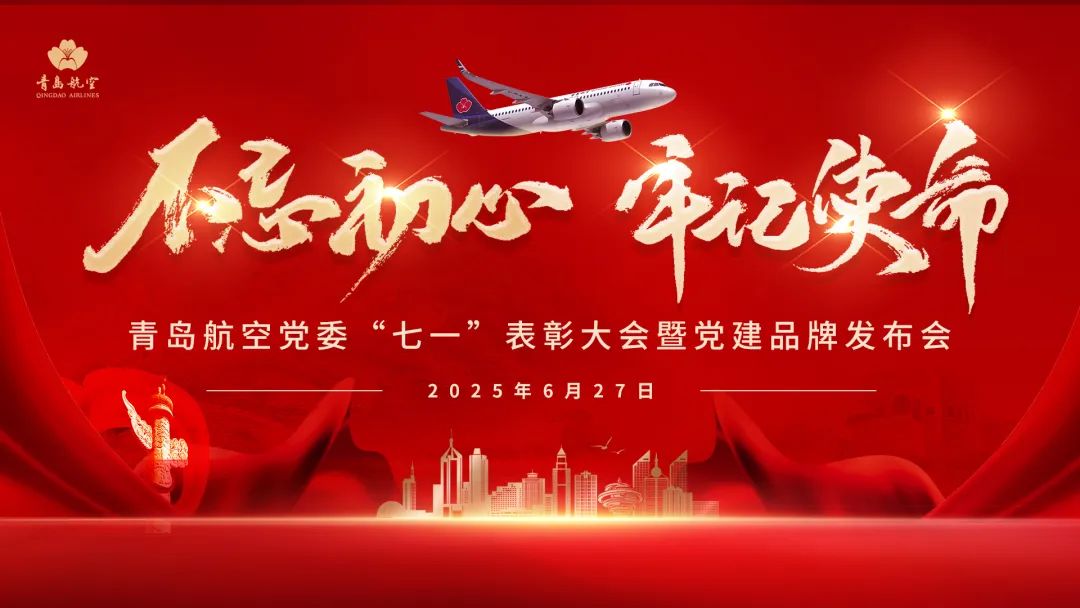为庆祝中国共产党成立104周年,6月27日,青岛城投集团旗下青岛航空召开“七一”表彰大会暨党建品牌发布会,回顾光辉历程,表彰先进典型,发布党建品牌,激励各级党组织和广大党员在推动公司高质量发展新征程中奋勇争先、再创佳绩。