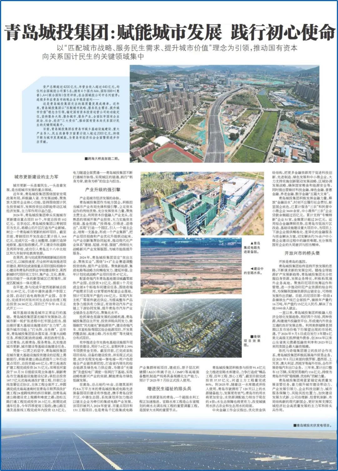 12月10日,青岛日报创刊暨青岛日报社成立75周年特刊整版刊载《青岛城投集团:赋能城市发展 践行初心使命》专题报道,以下为报道原文: