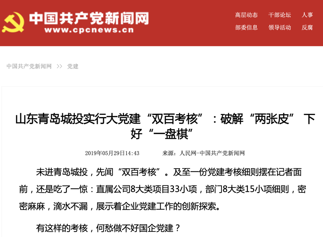 (图为中国共产党新闻网报道城投集团“双百考核”)