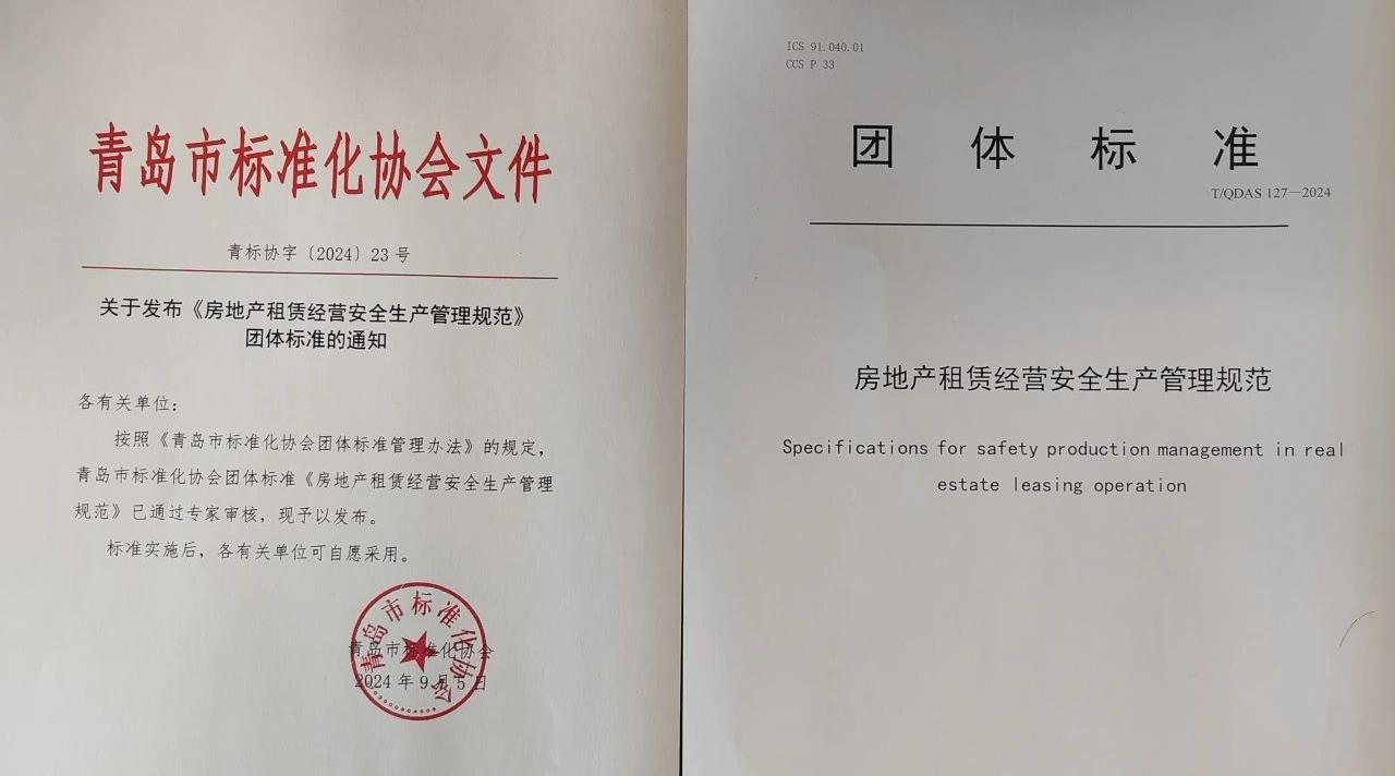 近日,由青岛城投集团安企部和城投集团旗下商管集团主编的青岛市团体标准《房地产租赁经营安全生产管理规范》(T/ODAS 127-2024)(以下简称《规范》),通过青岛市标准化协会审核,于2024年9月5日正式发布实施。房地产租赁领域历来是安全生产管理的薄弱环节,为进一步提升房地产租赁经营单位本质安全水平,规范各个环节的工作,集团安企部、商管集团联合相关单位,在广泛调查研究的基础上,认真总结集团多年的房地产租赁经营管理
