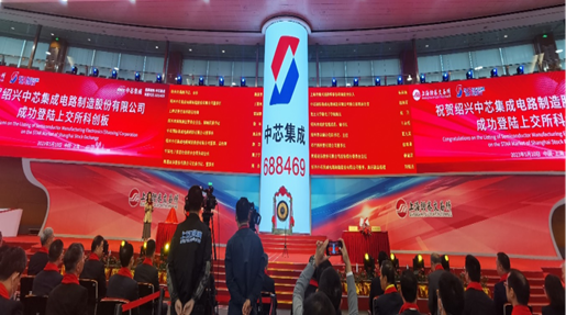 2023年5月10日,青岛城投集团创投公司投资企业——绍兴中芯集成电路制造股份有限公司(以下简称“中芯集成”)在上海证券交易所科创板挂牌上市,成功登陆A股资本市场,创投公司负责人受邀出席中芯集成上市仪式。中芯集成科创板首发新股数量16.92亿股,发行价格5.69元/股,募集资金96.27亿元。上市首日收盘价6.3元/股,涨幅超10%,市值达426亿元。(图为中芯集成上市仪式现场)创投公司于2020年12月通过盈科基金出资3.2亿元参与中