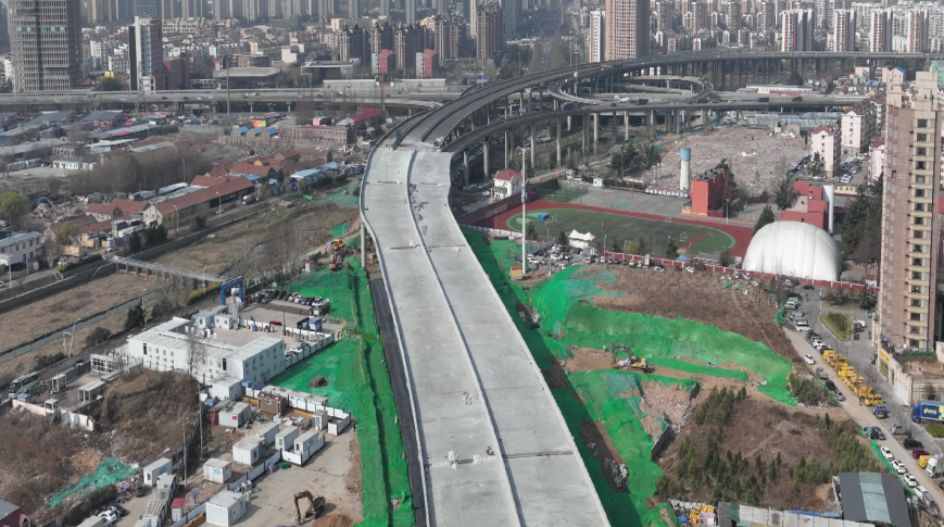 4月7日,青岛城投城市更新集团承建的跨海大桥高架路二期工程主线高架桥面铺装及防撞体施工全部完成,同时已开始桥面抛丸和防水施工,为面层沥青摊铺和附属设施施工打下坚实基础。跨海大桥高架路二期工程作为我市城市更新建设三年攻坚行动的重点工程,西起海尔路立交预留段,东至青银高速,全长约1.6km,主线标准段横断面宽度为33.65m与26.15m,桥面铺装总面积约38200㎡,防撞体约4400m。(图为跨海大桥二期主线高架现场航拍图)自