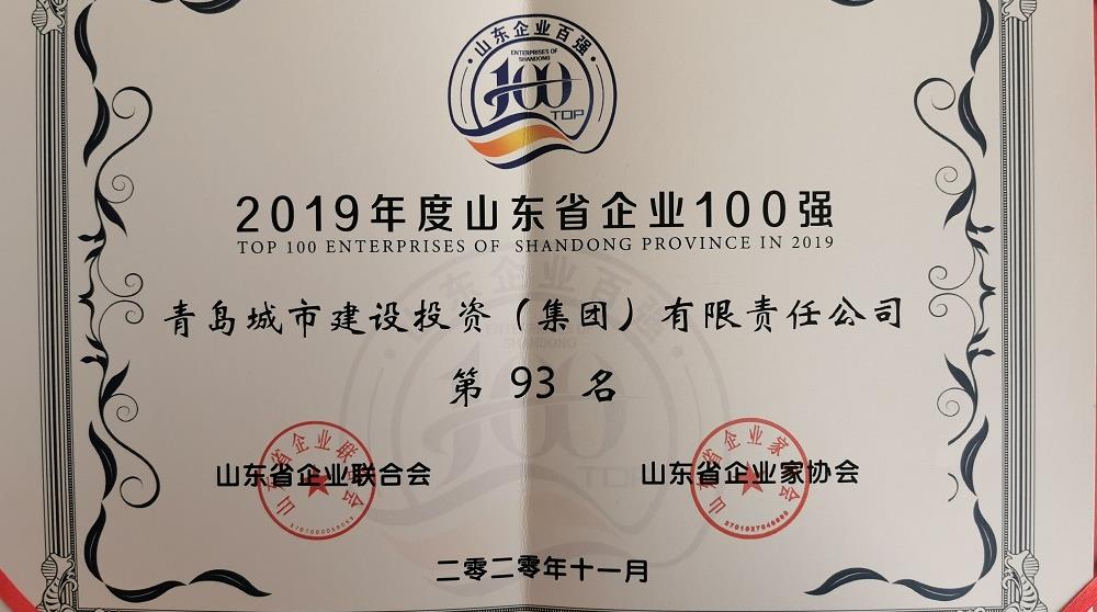 集团入围2019年度山东省百强企业榜单