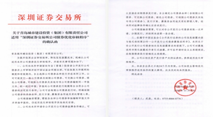 深圳证券交易所日前确认集团“优质发行人”资质,适用《深圳证券交易所公司债券优化审核程序》。集团积极响应青深两地合作,作为青岛市唯一一家在深交所具备“优质发行人”资质的企业,充分体现了资本市场对集团优良的主体资质和雄厚的企业实力的高度认可。不仅提升了集团在资本市场的影响力,更有效拓宽了集团融资渠道,也为后续优质低成本资金募集及多元化融资奠定了基础。